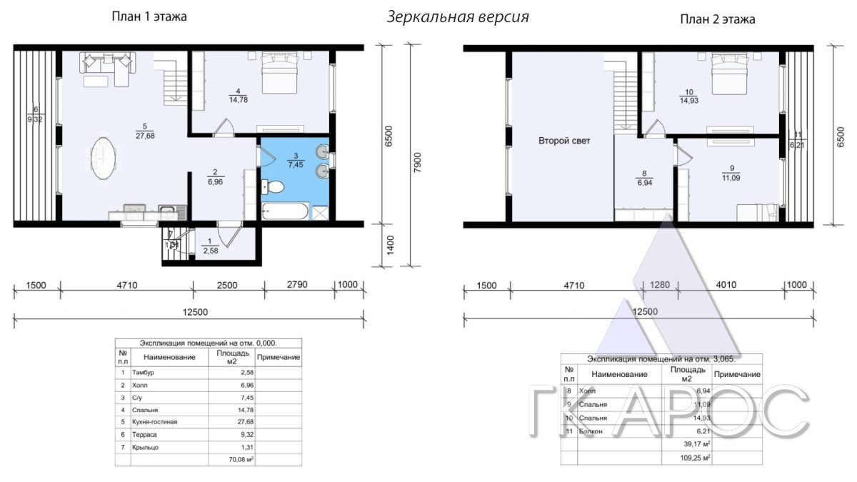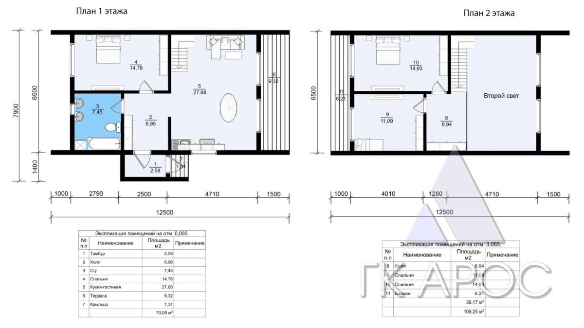 - Высота 1-го и 2-го этажей в чистоте: 2,7 м