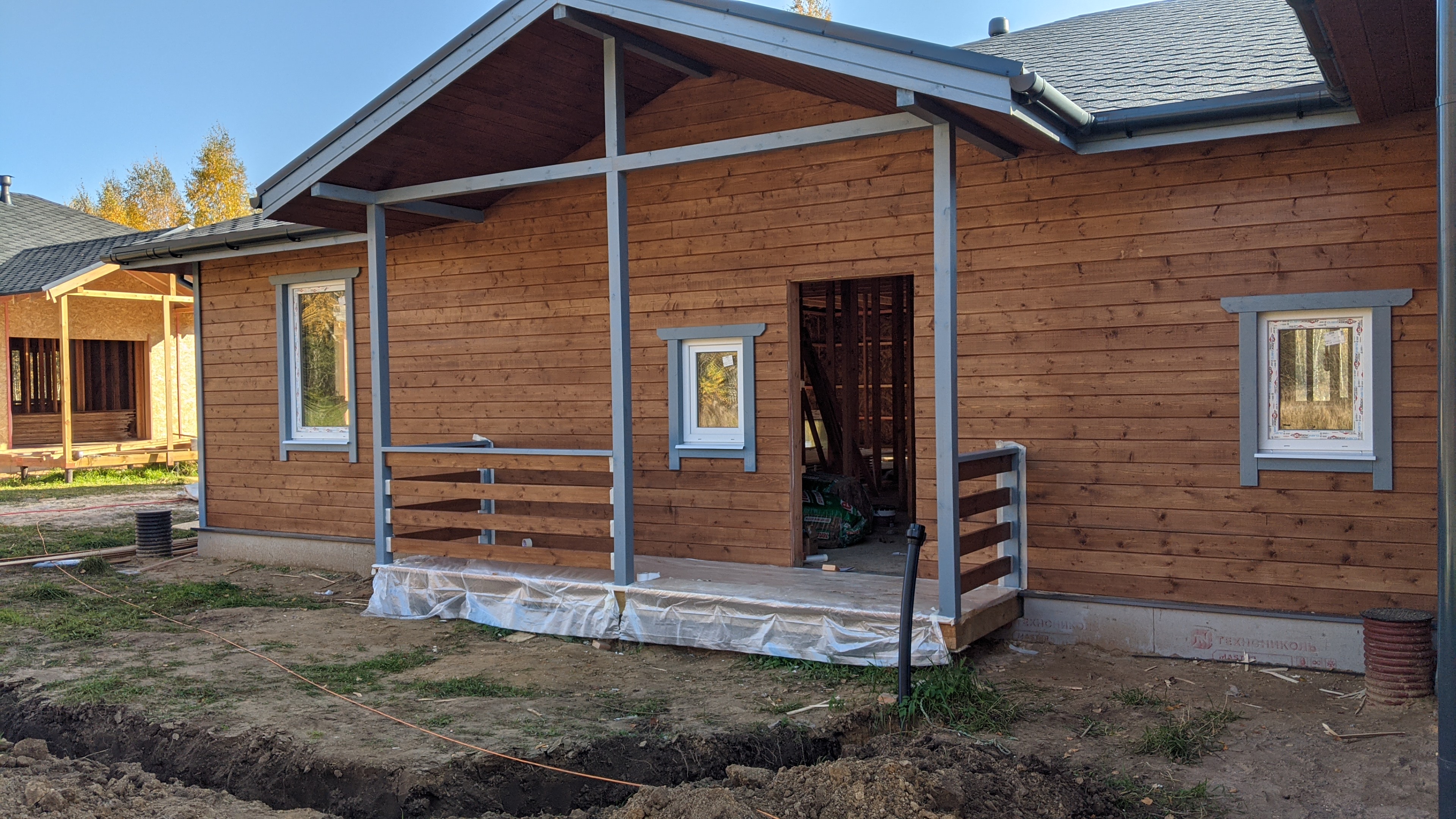 - Наружные стены: имитация бруса хвоя (камерной сушки) 20х145 мм с заводской покраской