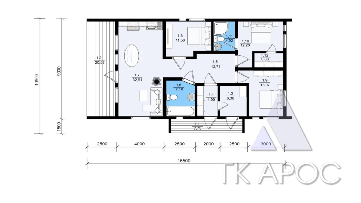 - Кровельное покрытие: металлочерепица 0,5 мм (цвет на выбор)