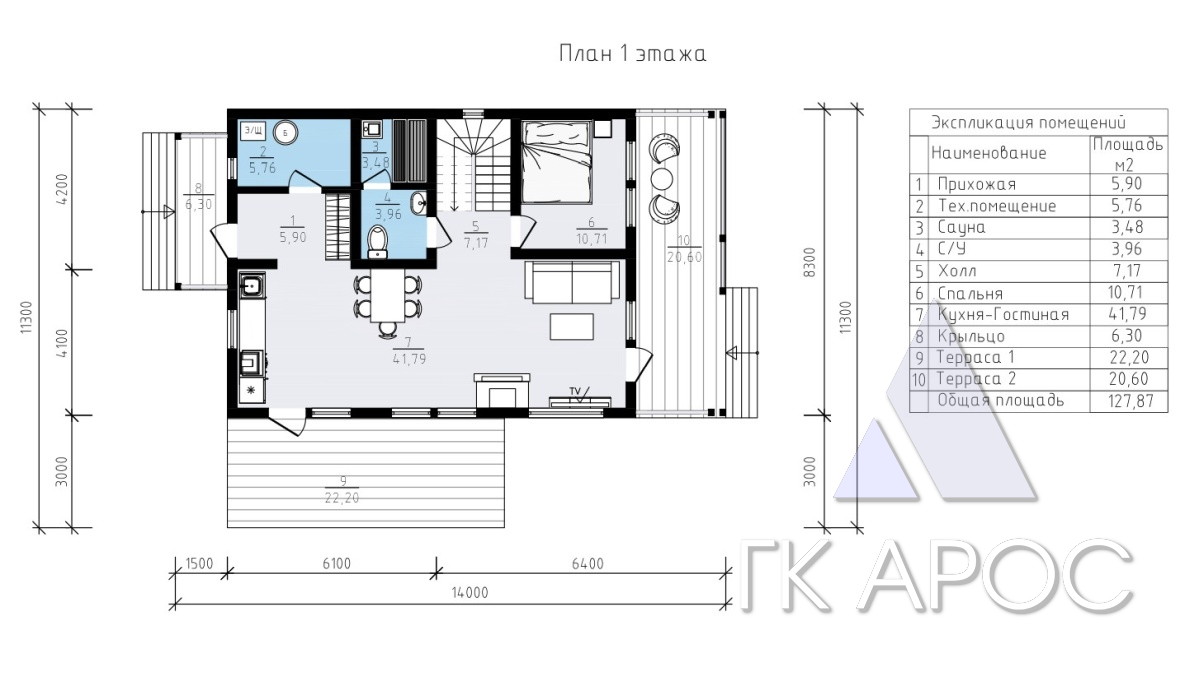 - Колонны: брус клееный сухой строганый 140х140 (хвоя)