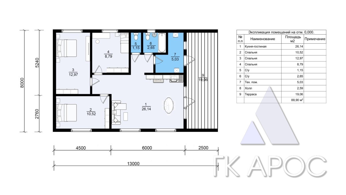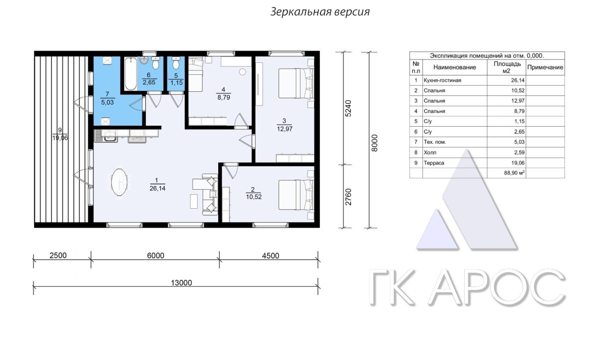 - Кровельное покрытие: металлочерепица 0,5 мм (цвет на выбор)